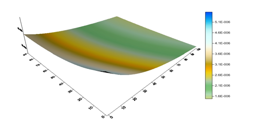 從采空區(qū)中心壓實(shí)區(qū)域到靠近采空區(qū)邊界的碎脹系數(shù)取 值為1.1~16。將對采空區(qū)不同地點(diǎn)所采煤樣的研究得出的粒徑和孔隙率數(shù)據(jù)帶入公式,再將所求解與煤樣所在采空區(qū)的位置進(jìn)行繪制采空區(qū)煤體的滲透率分布圖從采空區(qū)煤體滲透率的分布圖可以看出滲透率變化比較規(guī)律,靠近工作面比較大,遠(yuǎn)離工作面比較小,在工作面的的傾斜方向變化不大?! ?/span>