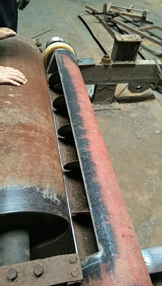 為了避免浮貨在膠帶輸送機(jī)尾輪周圍堆積,影響膠帶輸送機(jī)的安全運(yùn)行,曉南礦自行設(shè)計(jì)并制作了膠帶輸送機(jī)尾輪自動(dòng)除貨裝置,該裝置安設(shè)在膠帶輸送機(jī)尾輪前方,由蛟龍片、傳動(dòng)軸,摩擦輪、外殼及固定裝置組成。摩擦輪和皮帶尾輪緊密接觸,尾輪旋轉(zhuǎn)的同時(shí)依次帶動(dòng)摩擦輪和蛟龍片旋轉(zhuǎn),在膠帶輸送機(jī)運(yùn)行時(shí),可以自動(dòng)將尾輪前方的浮貨及時(shí)地清除到外幫,有效的避免了浮貨在尾輪周圍堆積,保證了膠帶輸送機(jī)的安全可靠運(yùn)行。該裝置投入使用后,實(shí)際效果良好。