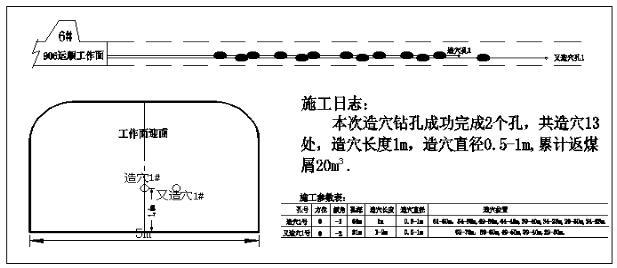 造穴鉆孔于3月31日四點班開始施工至4月1日四點班結(jié)束,施工期間大隆礦技術(shù)人員到現(xiàn)場指導(dǎo),共成功施工造穴鉆孔2個。