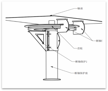 3、增設(shè)了斷軸保護裝置,該裝置采用全機械結(jié)構(gòu),能夠有效防止驅(qū)動軸斷裂后驅(qū)動輪及鋼絲繩沿斜巷下滑造成事故擴大,也能防止鋼絲繩松繩在驅(qū)動輪處發(fā)生脫繩事故。