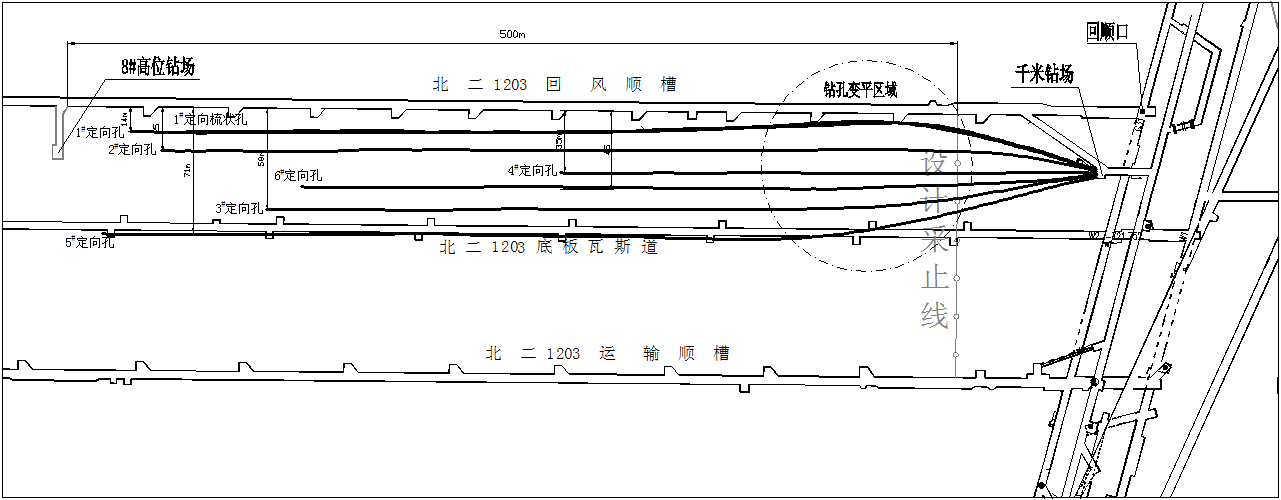 圖1 ?高位水平長鉆孔平面布置示意圖