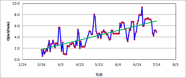 圖3??斜交鉆孔抽采量隨推進時間變化曲線