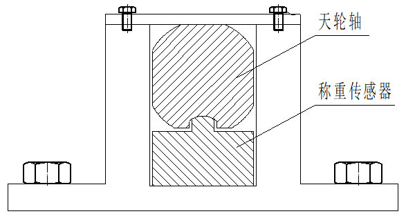 (2)傳感器安裝結構新穎,天輪軸兩端側面和下部加工成平面,下平面向上加工成圓弧底面圓孔,該圓孔與傳感器弧形頂面圓柱凸臺進行裝配,圓孔直徑略大于凸臺直徑,圓孔深度略小于凸臺高度,傳感器凸臺嵌入圓孔中,起到支持和定位的作用,使壓力更好地傳遞到稱重傳感器。圓弧面接觸能夠增大接觸面積,改善傳感器受力效果,避免局部應力造成的傳感器損壞,延長傳感器使用壽命。