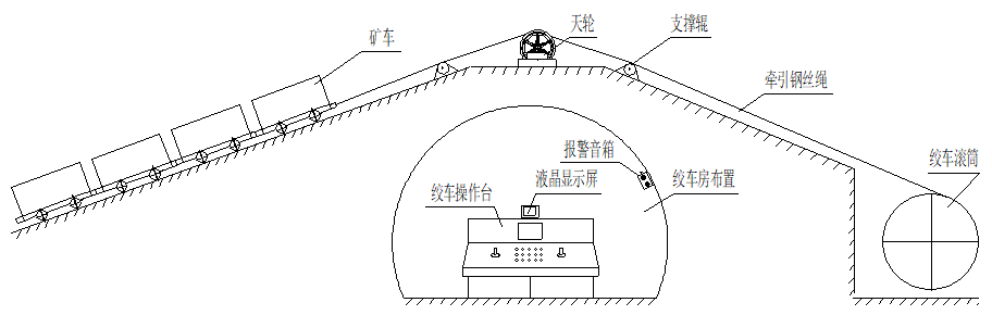 煤礦井下斜巷運輸是礦井運輸?shù)闹匾M成部分和重要環(huán)節(jié),斜巷串車提升在煤礦運輸系統(tǒng)中占有相當大的比重。煤礦斜巷運輸環(huán)境條件復雜,運輸斜巷距離長、彎道多、變坡多,對絞車安全運行造成不利影響。以往絞車司機只能按信號操作,一旦發(fā)生礦車掉道或側翻等事故時無法及時發(fā)現(xiàn),如果斜巷絞車繼續(xù)拉車運行,容易發(fā)生絞車過載及牽引鋼絲繩破斷,造成機械及人身事故,形成安全隱患。煤礦斜巷絞車鋼絲繩張力在線監(jiān)測裝置應適應不同地質條件特點,采取靈活的信號采集方式,才能實現(xiàn)絞車鋼絲繩張力的在線實時監(jiān)測、顯示和報警,從而保證斜巷運輸絞車安全運行,確保煤礦安全生產。?