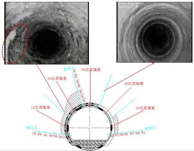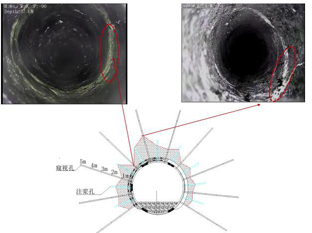 采用鉆孔窺視等方法確定了漿液的擴散半徑和漿液的擴散深度,再結(jié)合對圍巖力學(xué)參數(shù)、微觀結(jié)構(gòu)、成分以及變形情況等方面的測試結(jié)果,作出了注漿效果評價。