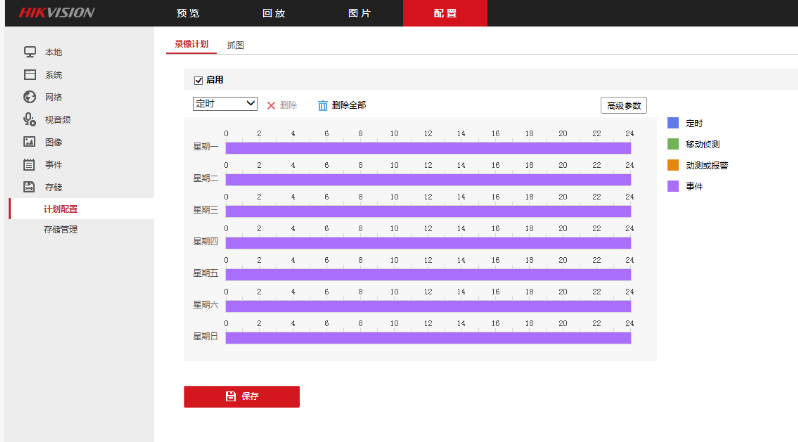 由于網(wǎng)絡(luò)條件的限制,對于網(wǎng)絡(luò)覆蓋不到的地面工作場所和井下工作場所,在監(jiān)視點(diǎn),安裝插入存諸卡攝像頭。先格式化存儲卡設(shè)置錄像分配比率100%,設(shè)置錄像計劃,同步攝像頭的系統(tǒng)時間。