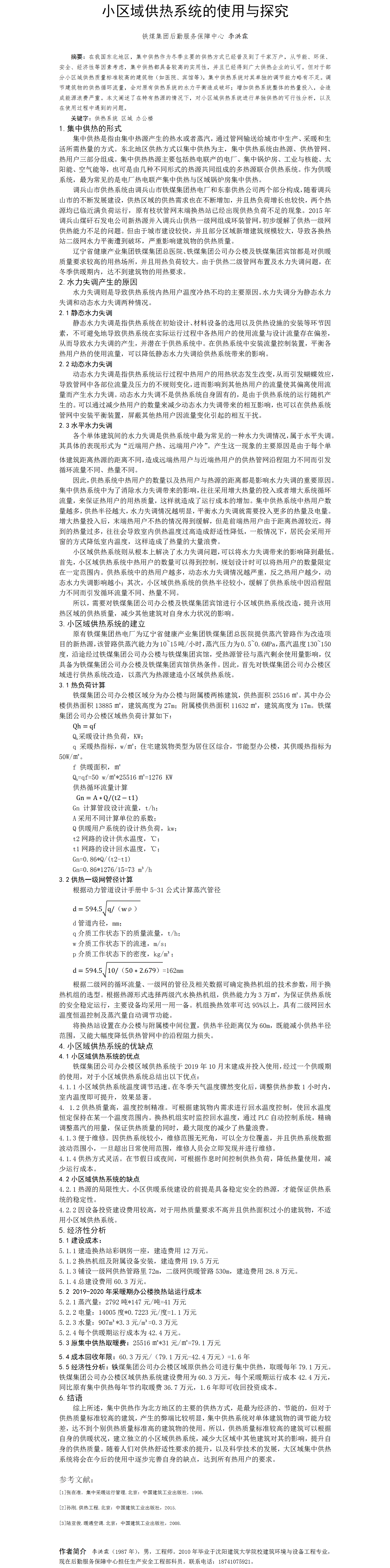 第47屆等級(jí)獎(jiǎng)?wù)撐?--小區(qū)域供熱系統(tǒng)的使用與探究
