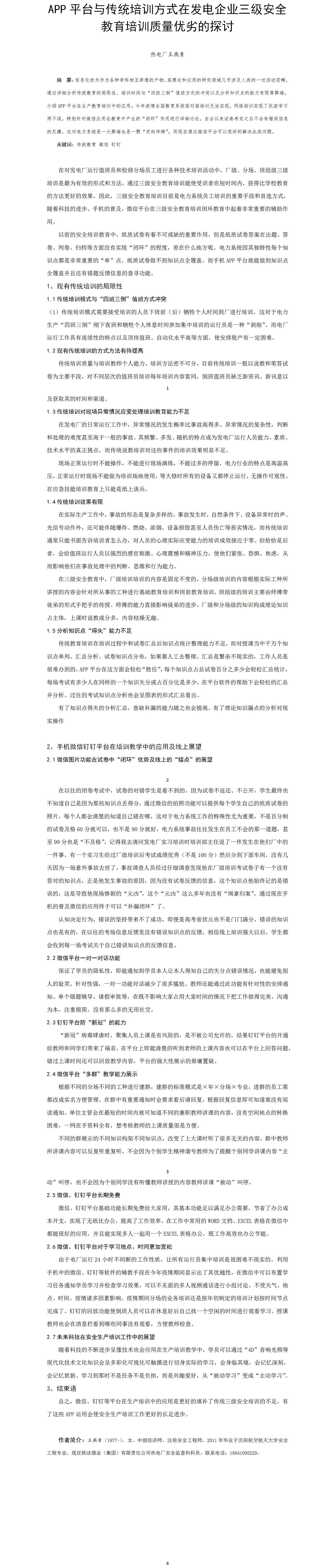 第48屆等級(jí)獎(jiǎng)?wù)撐?--APP平臺(tái)與傳統(tǒng)培訓(xùn)方式在發(fā)電企業(yè)三級(jí)安全教育培訓(xùn)質(zhì)量優(yōu)劣的探討