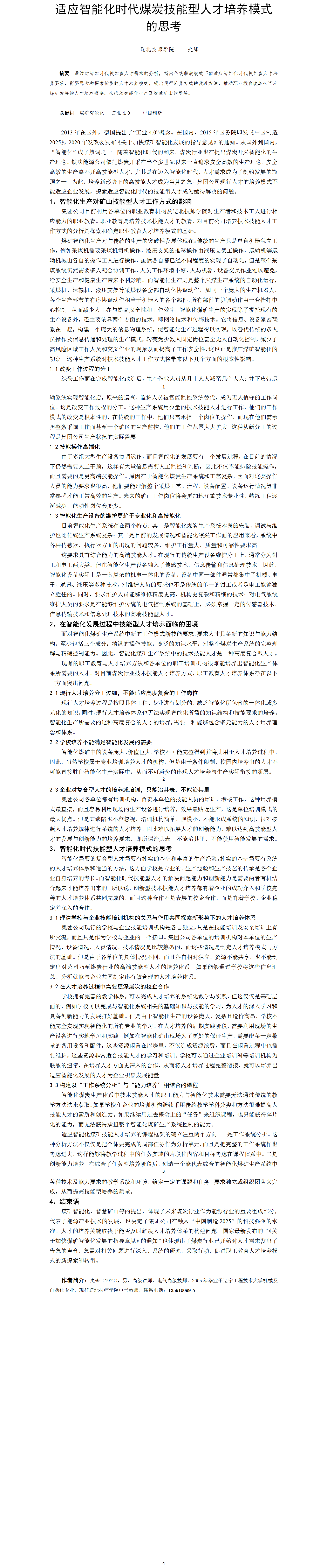 第48屆等級獎論文---適應智能化時代煤炭技能型人才培養(yǎng)模式的思考