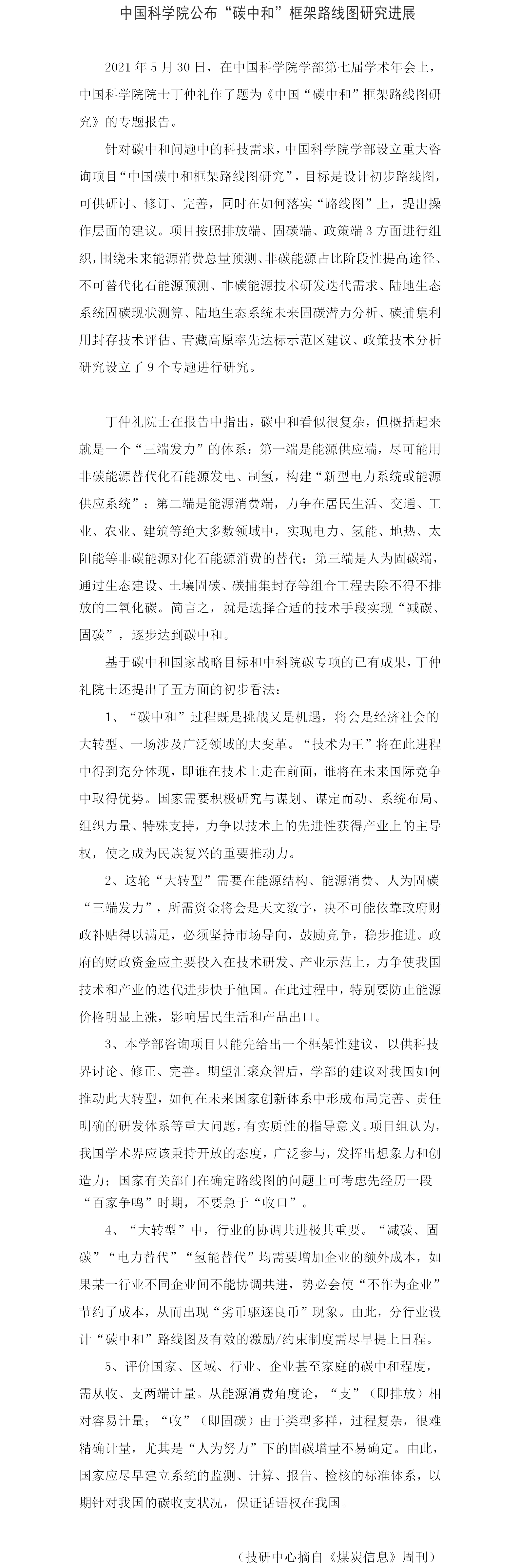中國科學(xué)院公布“碳中和”框架路線圖研究進(jìn)展