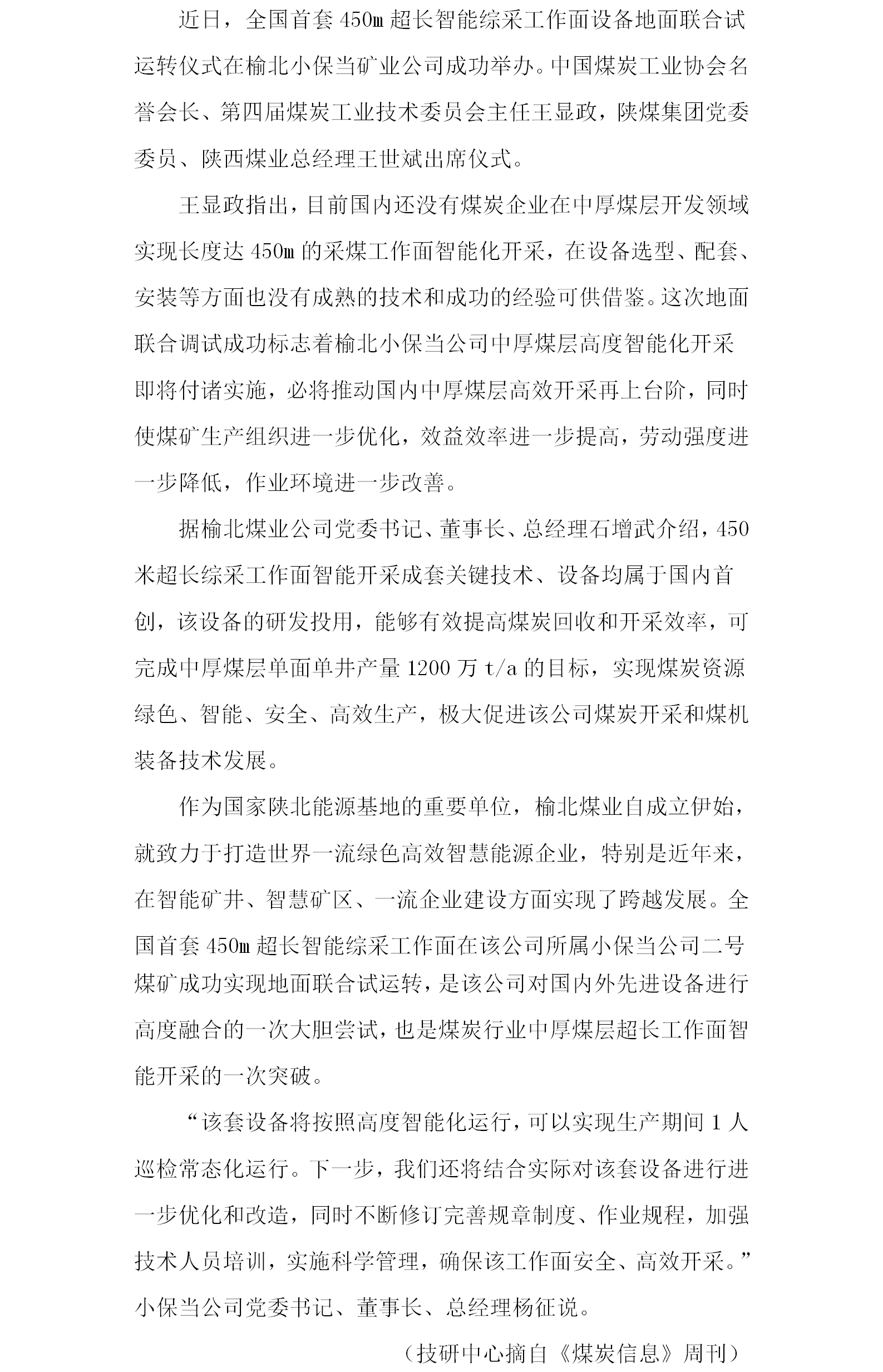全國(guó)首套450m超長(zhǎng)智能綜采設(shè)備成功實(shí)現(xiàn)地面聯(lián)合試運(yùn)轉(zhuǎn)
