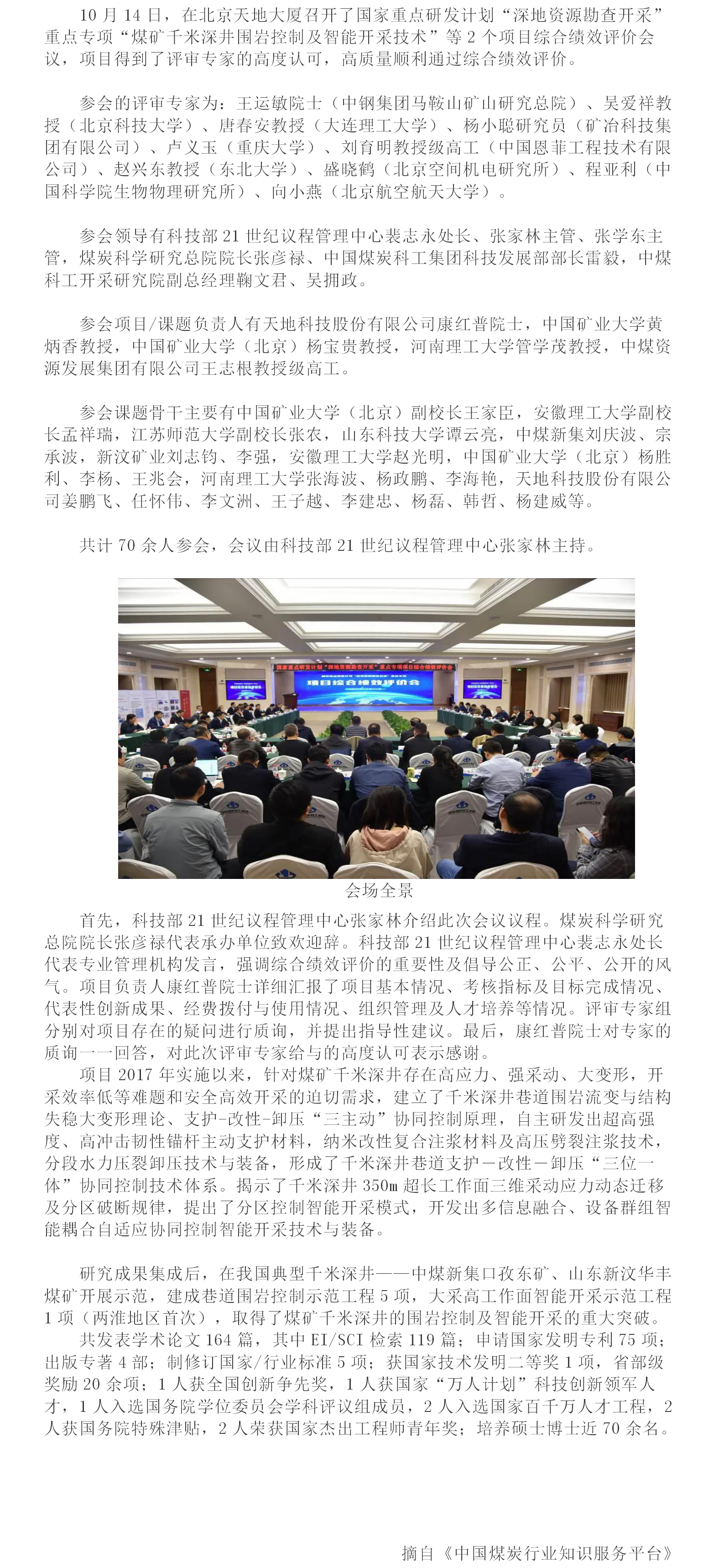 國(guó)家重點(diǎn)研發(fā)計(jì)劃項(xiàng)目“煤礦千米深井圍巖控制及智能開采技術(shù)”高質(zhì)量通過科技部綜合績(jī)效評(píng)價(jià)