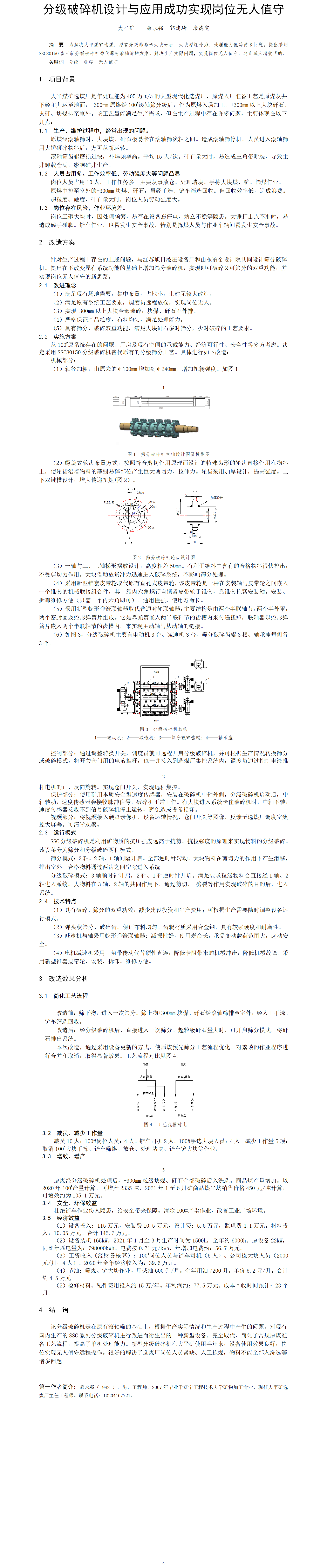 第51屆等級獎?wù)撐?--分級破碎機設(shè)計與應用成功實現(xiàn)崗位無人值守
