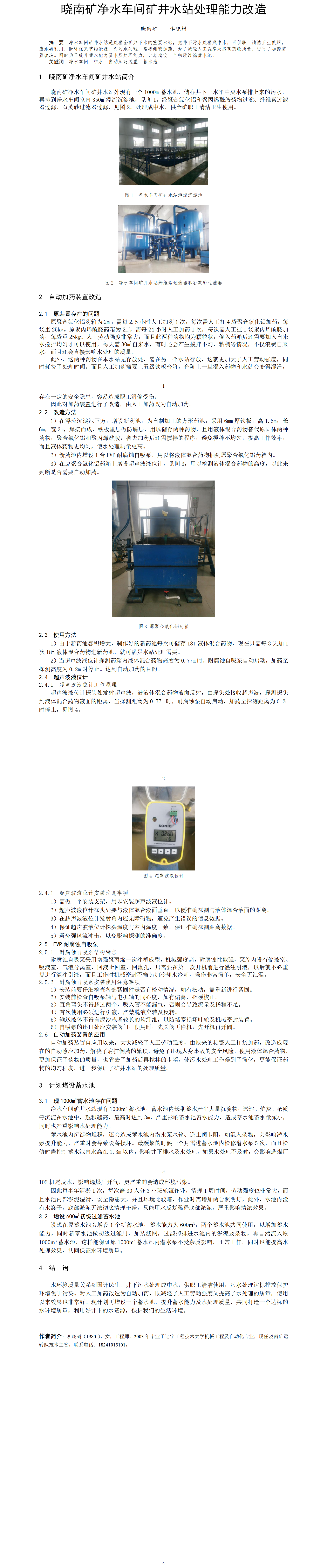 第51屆等級獎?wù)撐?--曉南礦凈水車間礦井水站處理能力改造