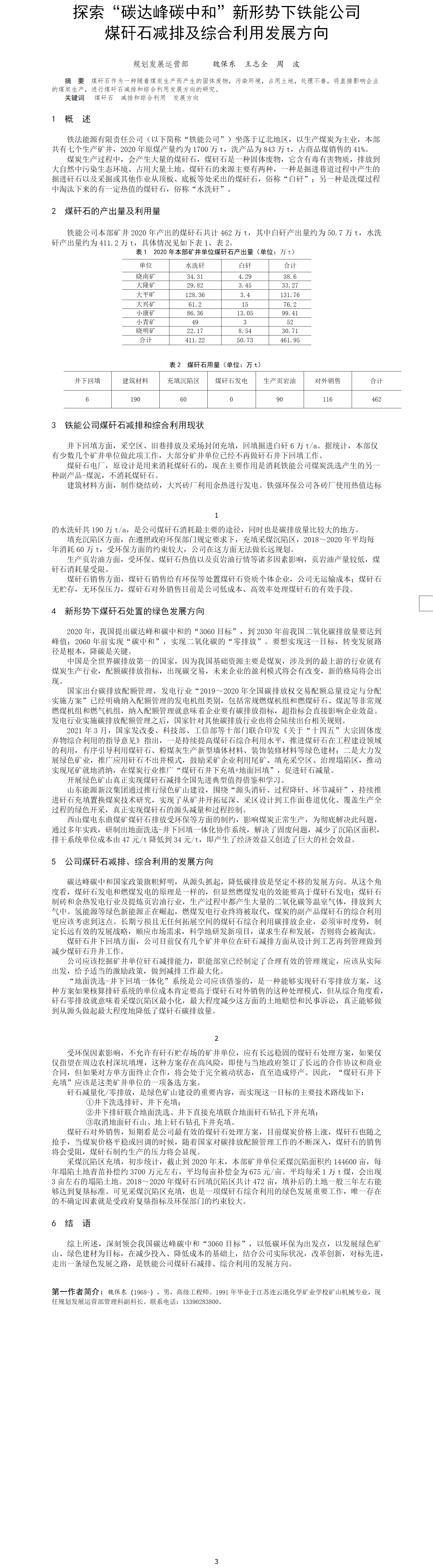 第52屆等級獎論文---探索“碳達峰碳中和”新形勢下鐵能公司煤矸石減排及綜合利用發(fā)展方向