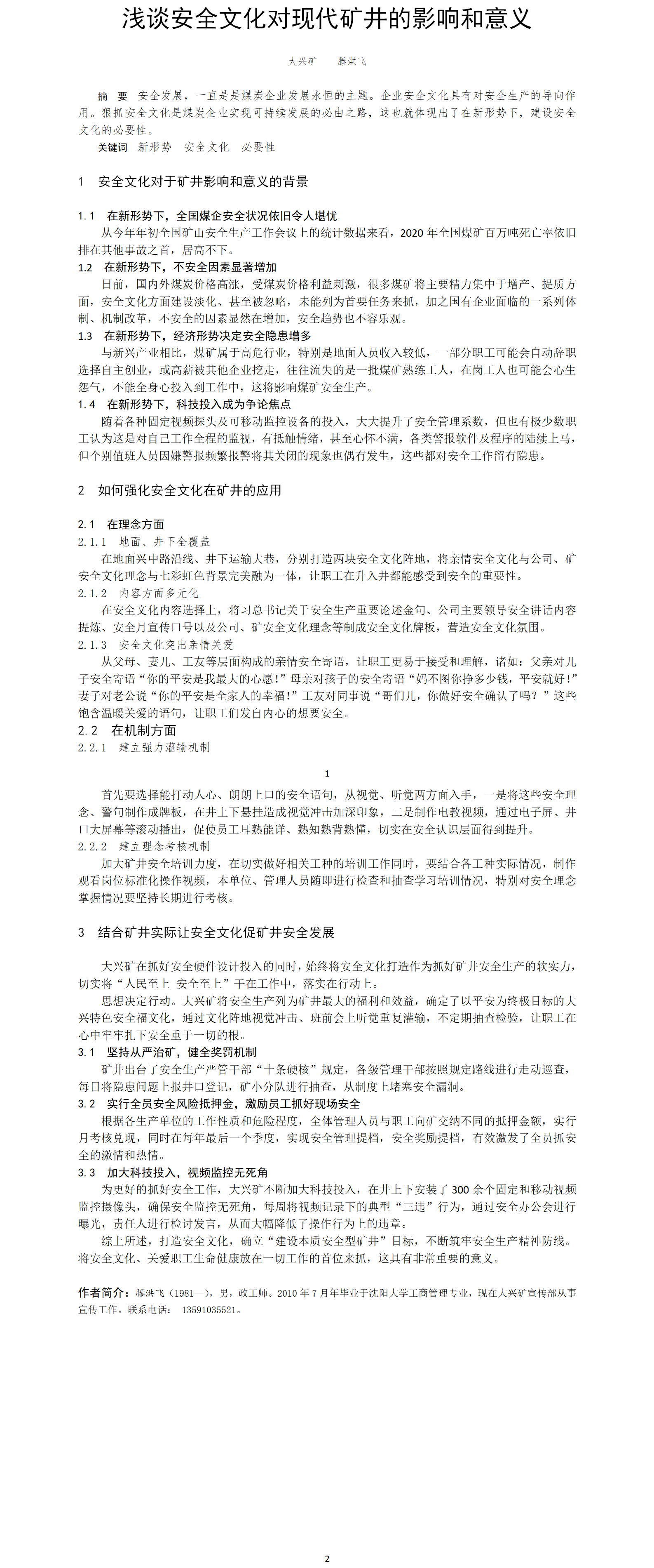 第52屆等級(jí)獎(jiǎng)?wù)撐?--淺談安全文化對(duì)現(xiàn)代礦井的影響和意義