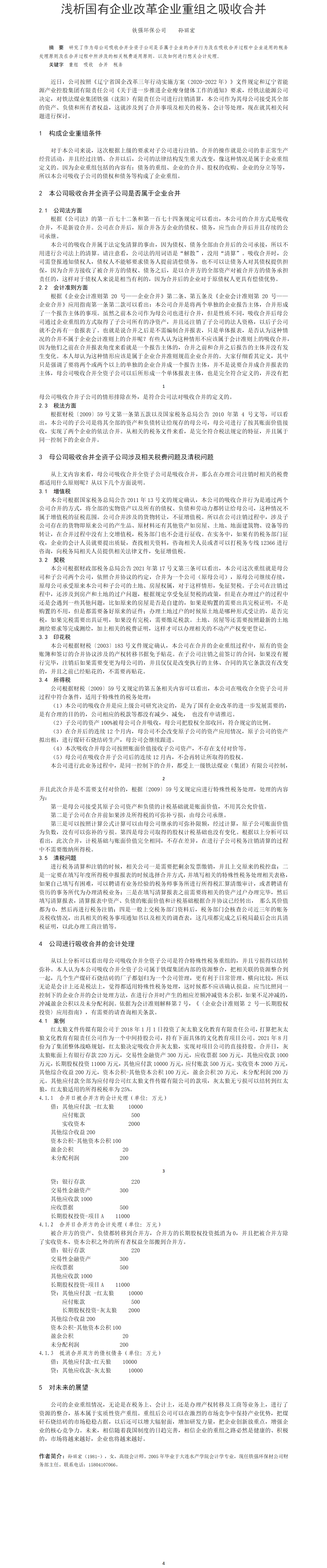 第52屆等級(jí)獎(jiǎng)?wù)撐?--淺析國有企業(yè)改革企業(yè)重組之吸收合并