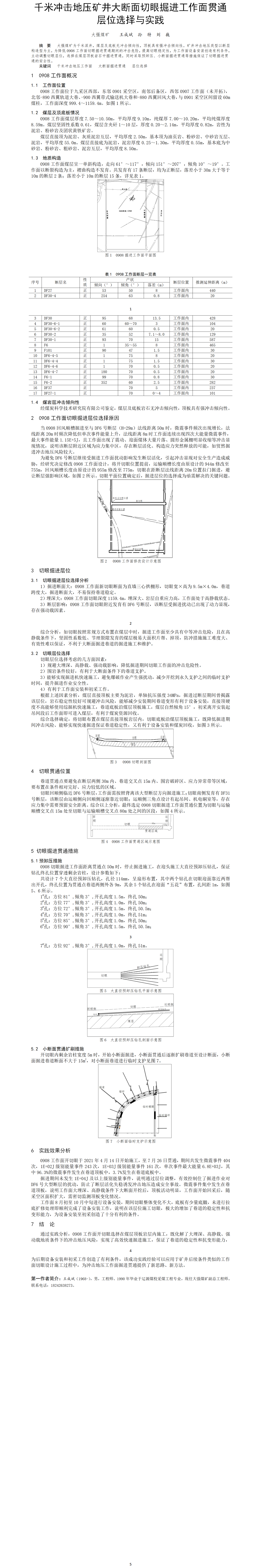 第53屆等級獎?wù)撐?--千米沖擊地壓礦井大斷面切眼掘進工作面貫通層位選擇與實踐