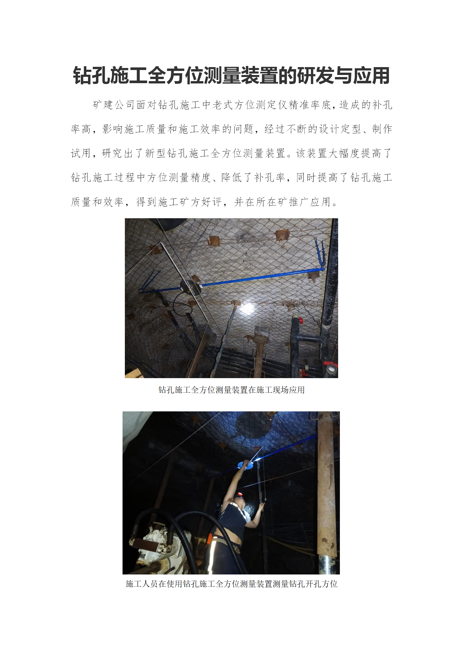鉆孔施工全方位測量裝置的研發(fā)與應用