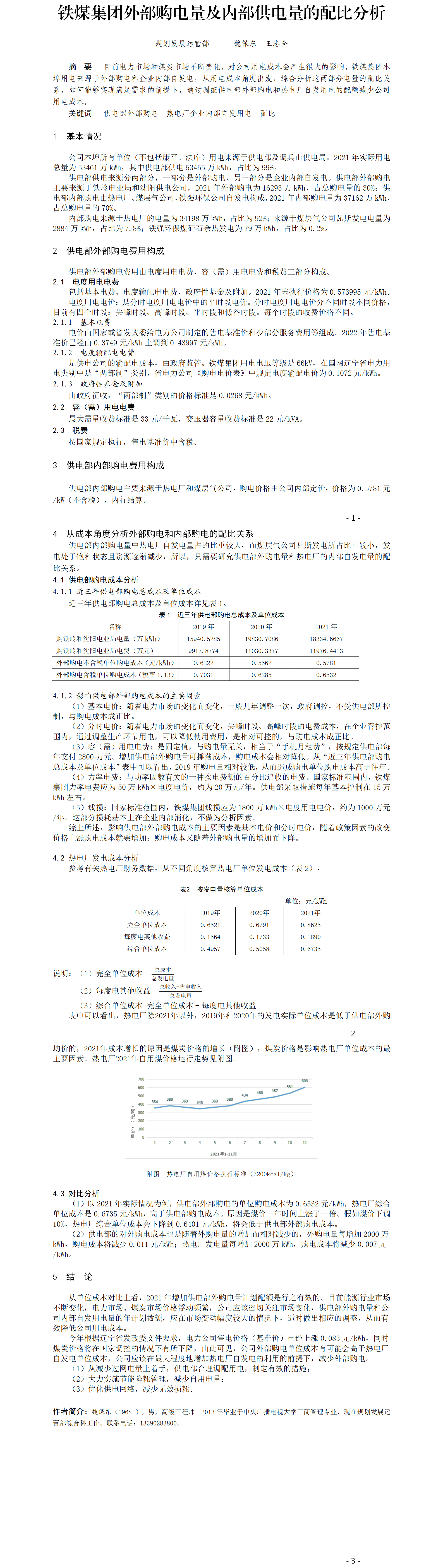 第54屆等級(jí)獎(jiǎng)?wù)撐?--鐵煤集團(tuán)外部購電量及內(nèi)部供電量的配比分析