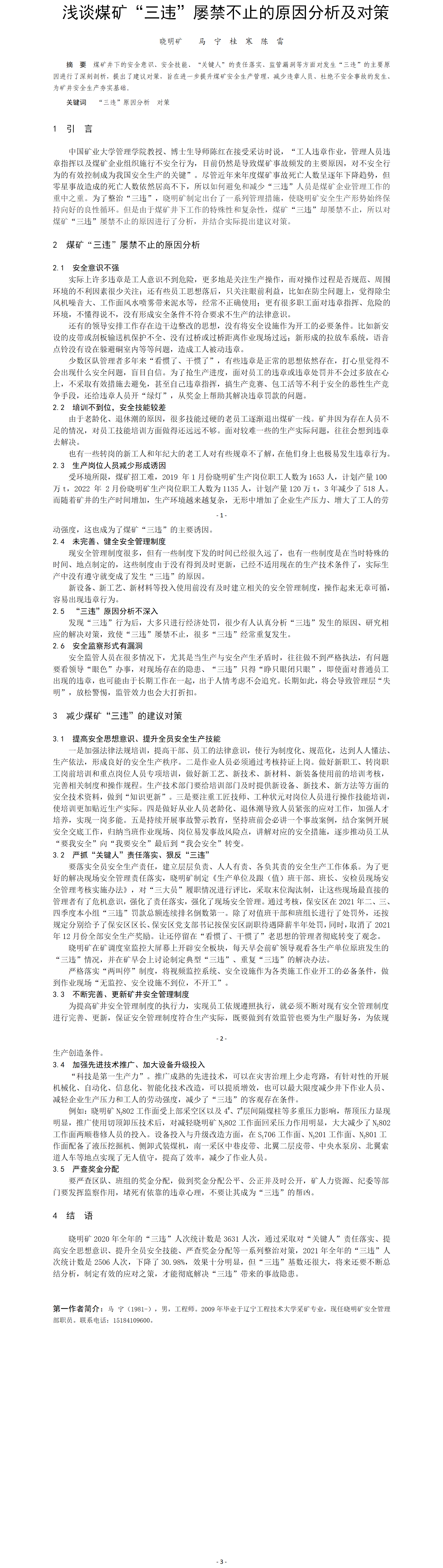 第54屆等級(jí)獎(jiǎng)?wù)撐?--淺談煤礦“三違”屢禁不止的原因分析及對(duì)策