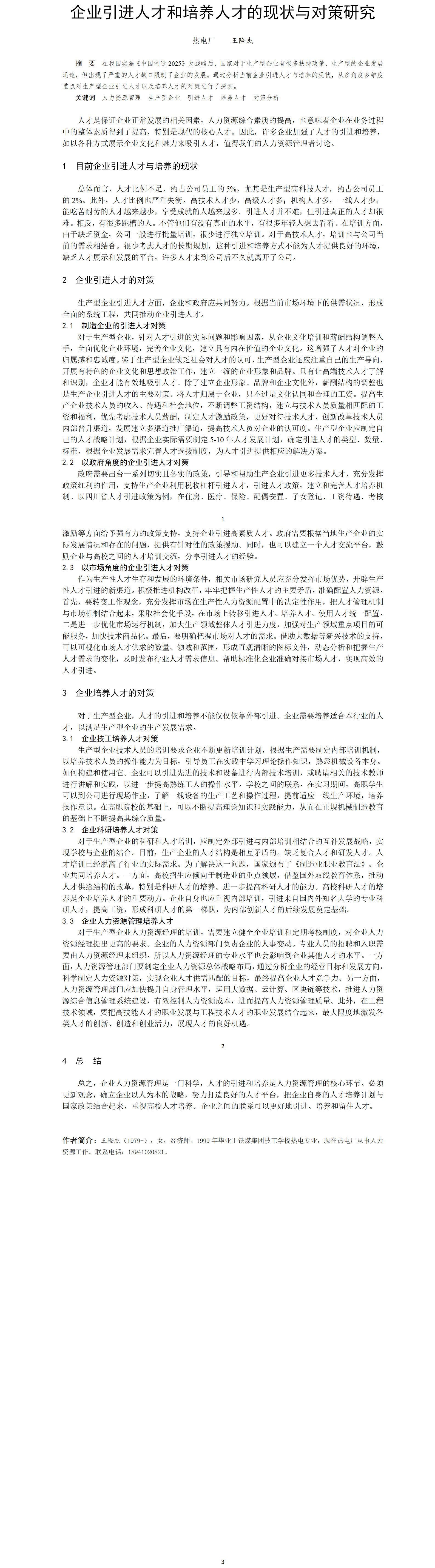 第54屆等級獎論文---企業(yè)引進人才和培養(yǎng)人才的現(xiàn)狀與對策研究