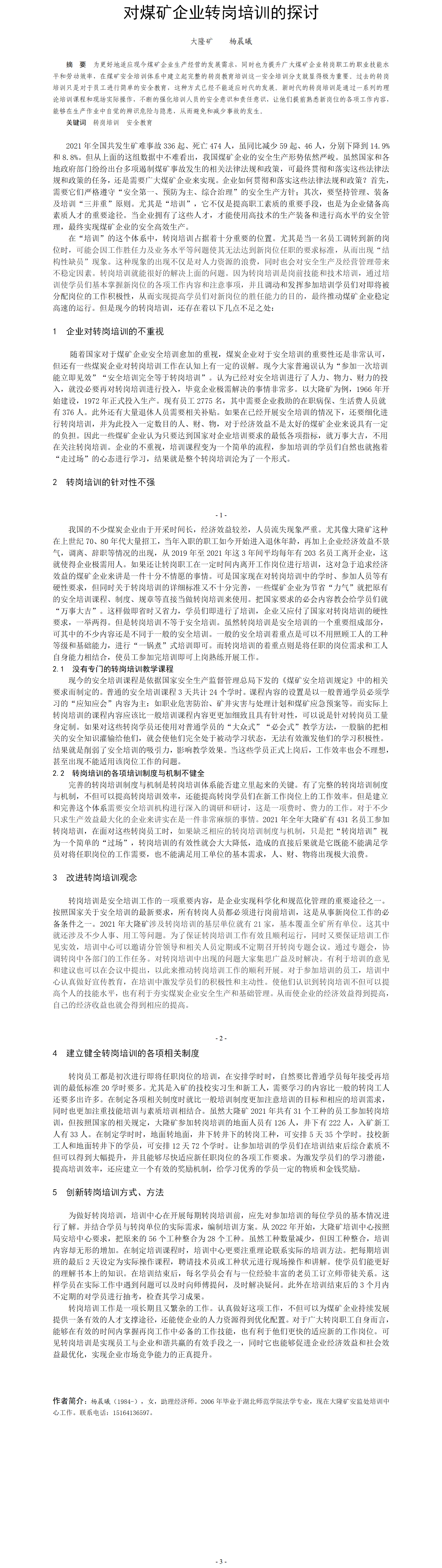 第54屆等級獎論文---對煤礦企業(yè)轉(zhuǎn)崗培訓的探討