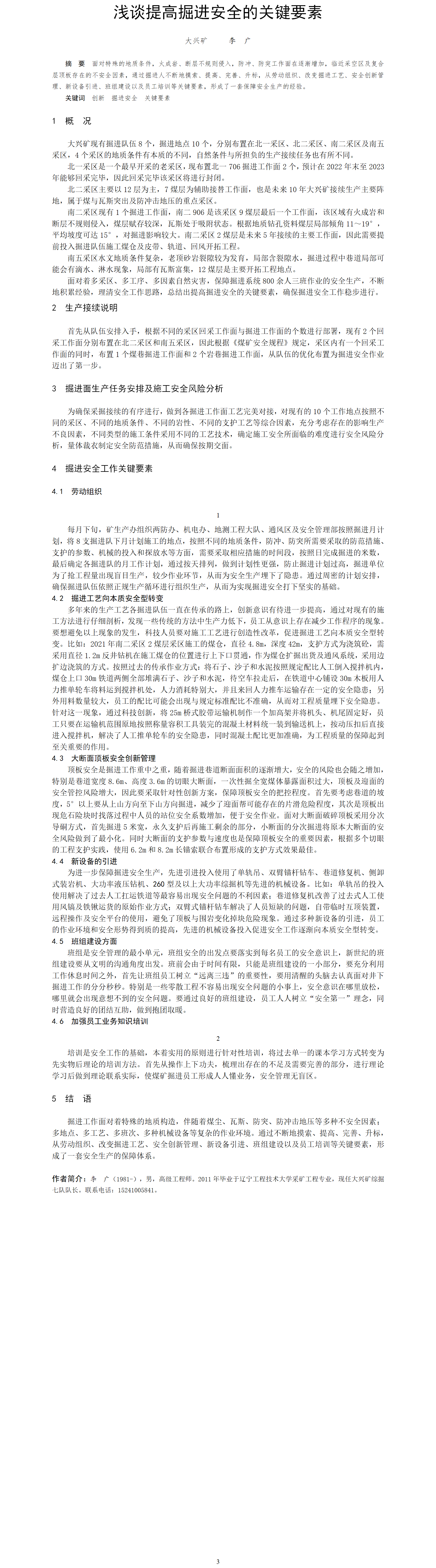 第54屆等級獎?wù)撐?--淺談提高掘進安全的關(guān)鍵要素