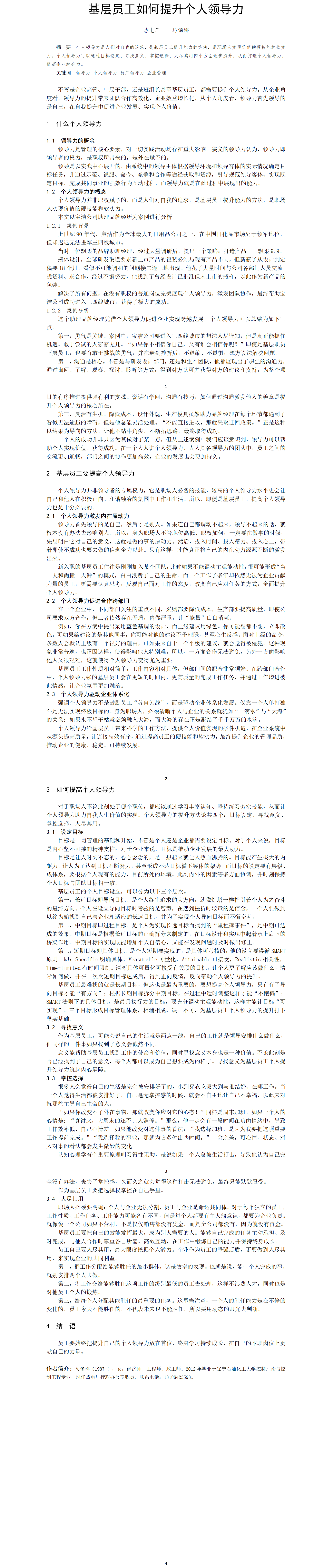 第54屆等級(jí)獎(jiǎng)?wù)撐?--基層員工如何提升個(gè)人領(lǐng)導(dǎo)力