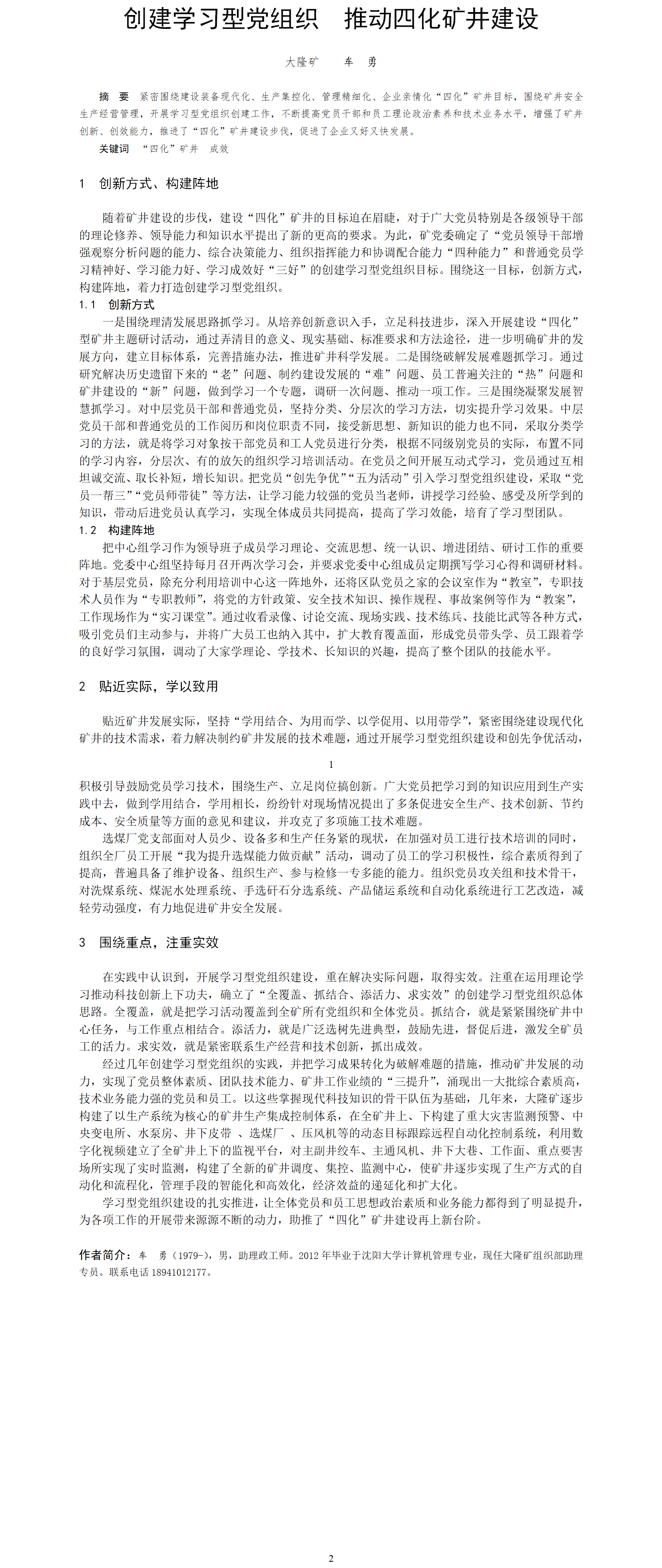 第54屆等級獎?wù)撐?--創(chuàng)建學(xué)習(xí)型黨組織 推動四化礦井建設(shè)