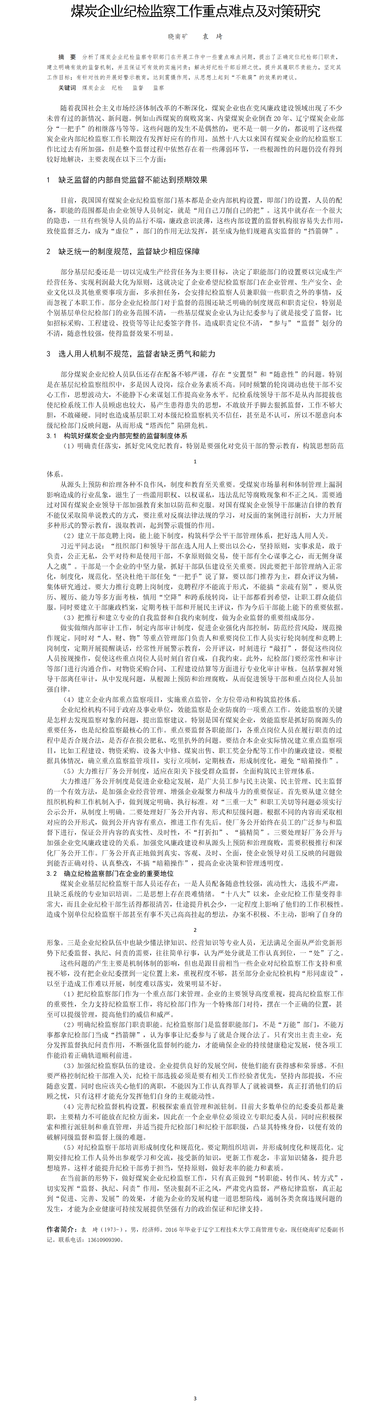 第54屆等級(jí)獎(jiǎng)?wù)撐?--煤炭企業(yè)紀(jì)檢監(jiān)察工作重點(diǎn)難點(diǎn)及對(duì)策研究