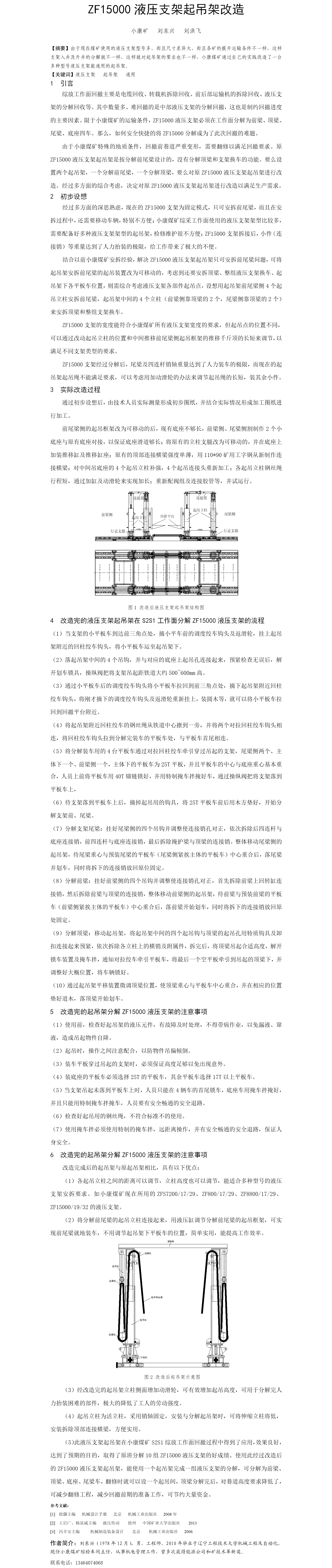 第56屆等級獎論文---ZF15000液壓支架起吊架改造