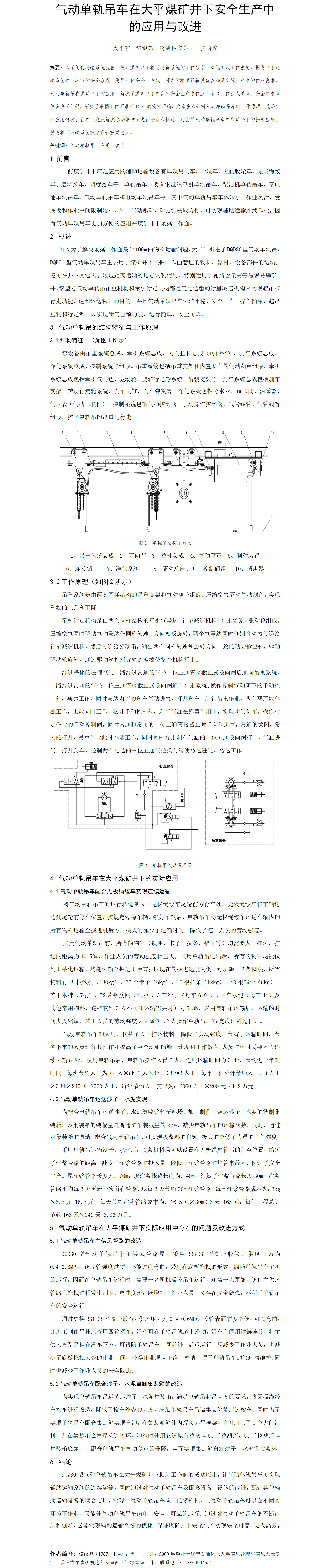 第56屆等級獎論文---氣動單軌吊車在大平煤礦井下安全生產(chǎn)中的應用與改進