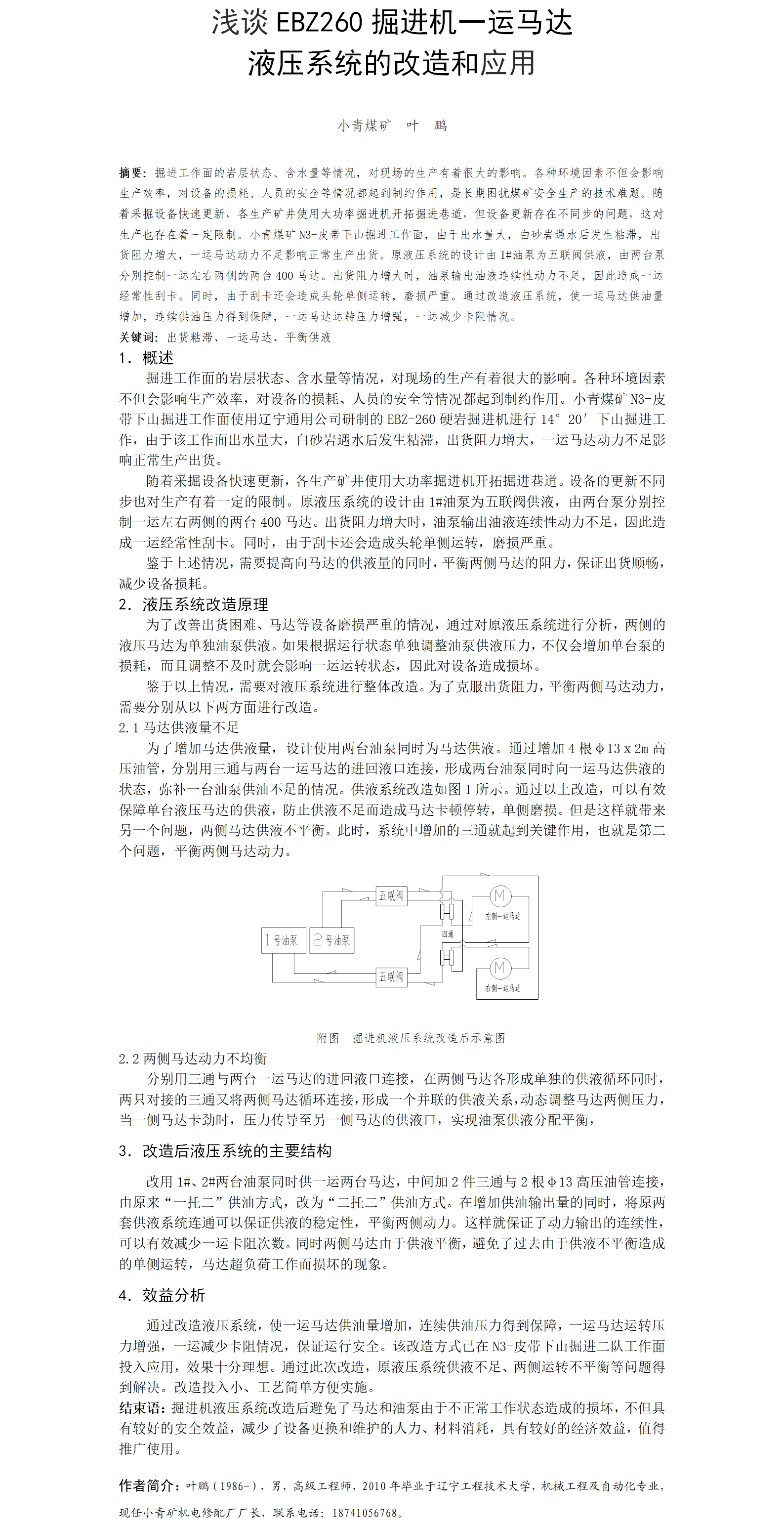 第56屆等級獎?wù)撐?--淺談EBZ260掘進機一運馬達液壓系統(tǒng)的改造和應(yīng)用