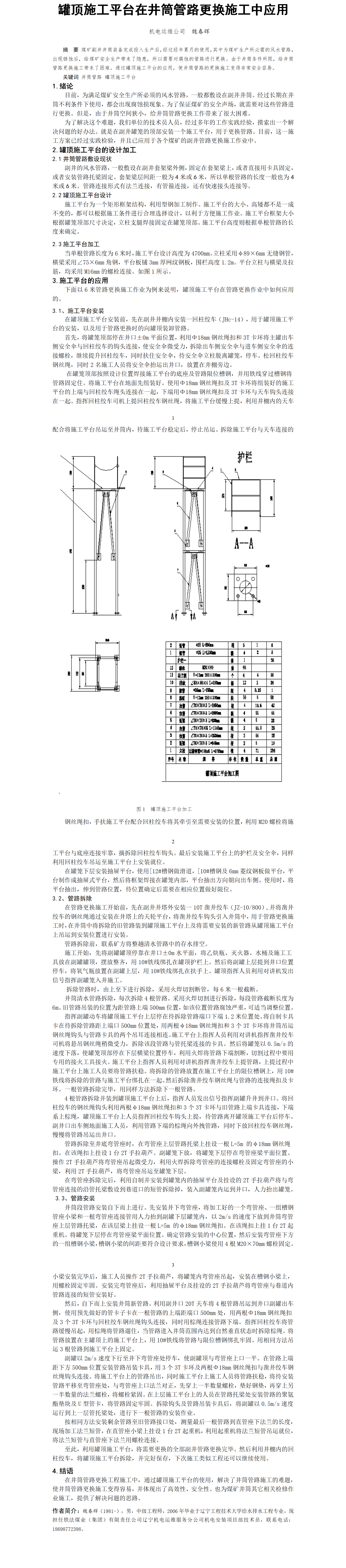 第56屆等級獎論文---罐頂施工平臺在井筒管路更換施工中的應用