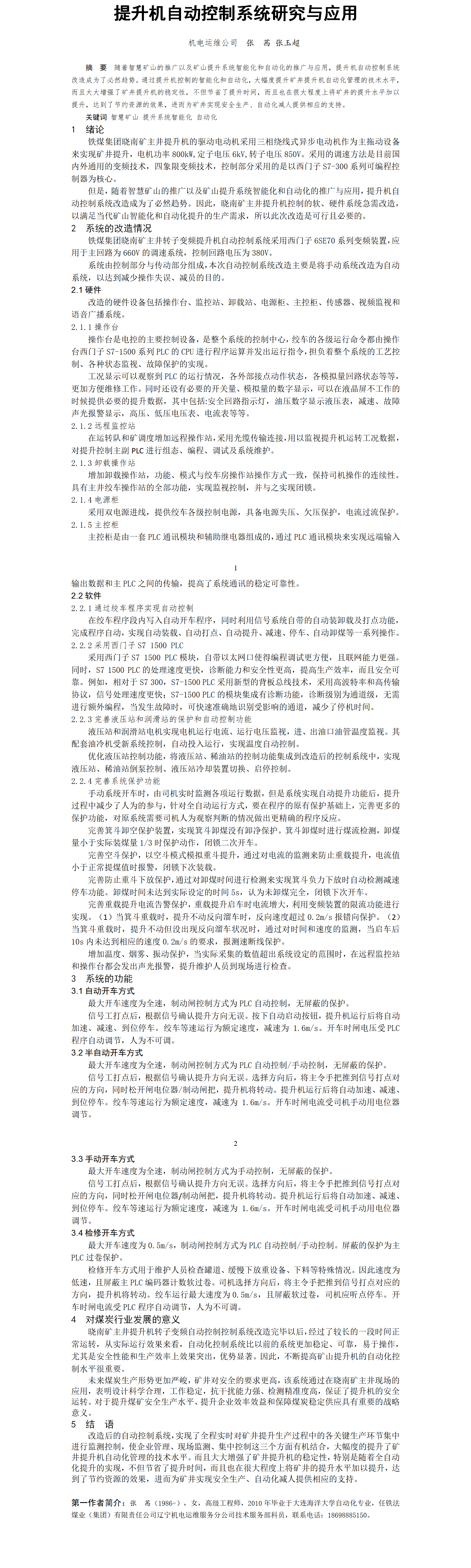 第56屆等級(jí)獎(jiǎng)?wù)撐?--提升機(jī)自動(dòng)控制系統(tǒng)研究與應(yīng)用