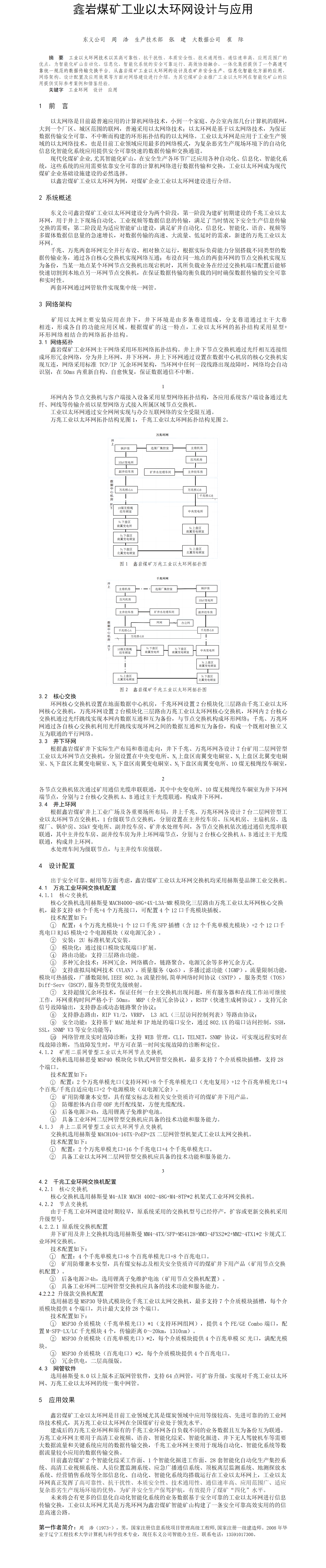 第56屆等級獎論文---鑫巖煤礦工業(yè)以太環(huán)網(wǎng)設計與應用
