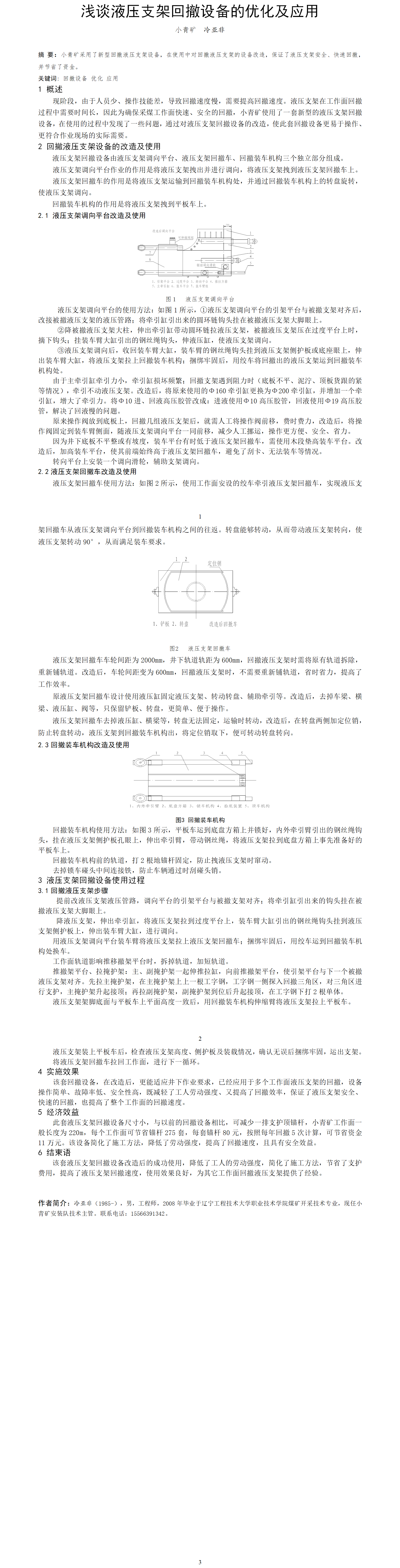 第57屆等級獎?wù)撐?--淺談液壓支架回撤設(shè)備的優(yōu)化及應(yīng)用
