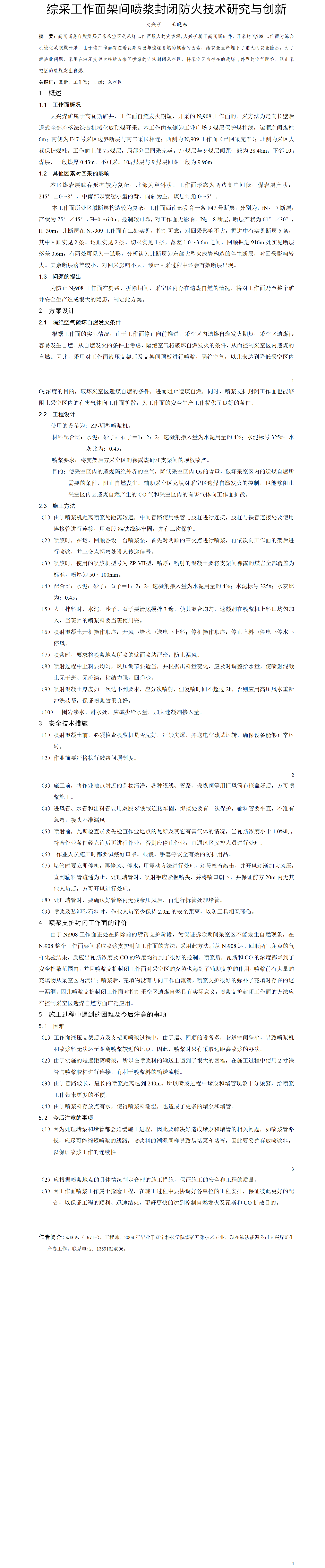 第57屆等級(jí)獎(jiǎng)?wù)撐?--綜采工作面架間噴漿封閉防火技術(shù)與創(chuàng)新