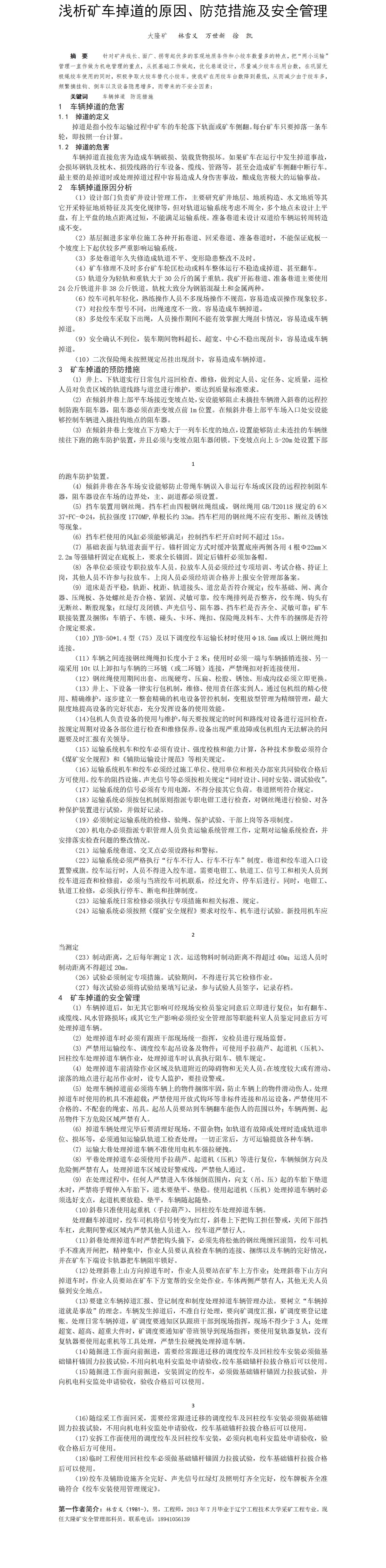 第58屆等級(jí)獎(jiǎng)?wù)撐?--淺析礦車(chē)掉道的原因、防范措施及安全管理