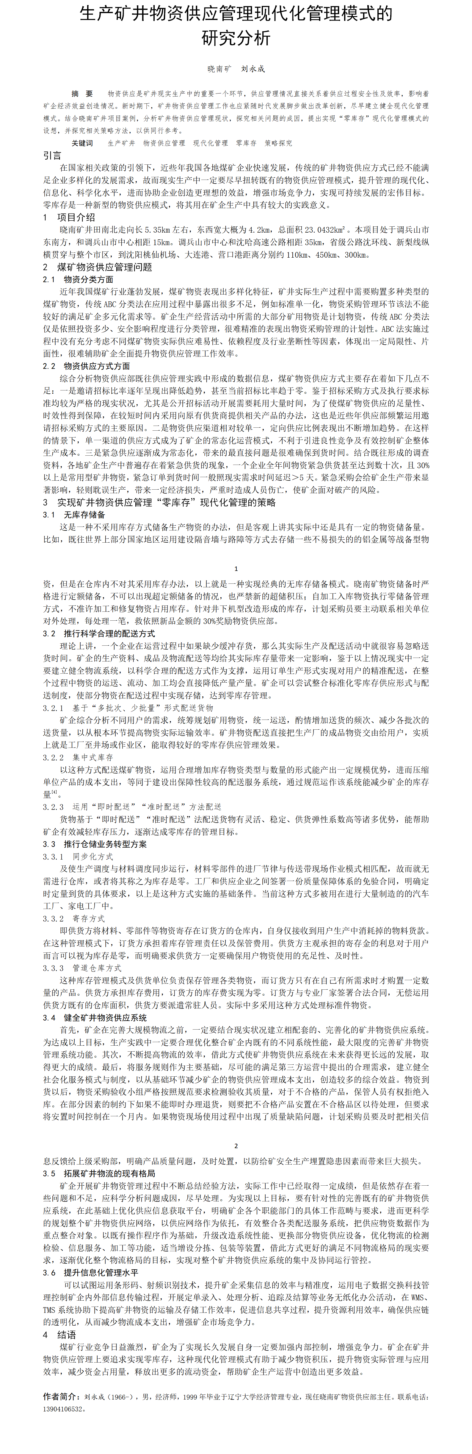 第58屆等級(jí)獎(jiǎng)?wù)撐?--生產(chǎn)礦井物資供應(yīng)管理現(xiàn)代化管理模式的研究分析