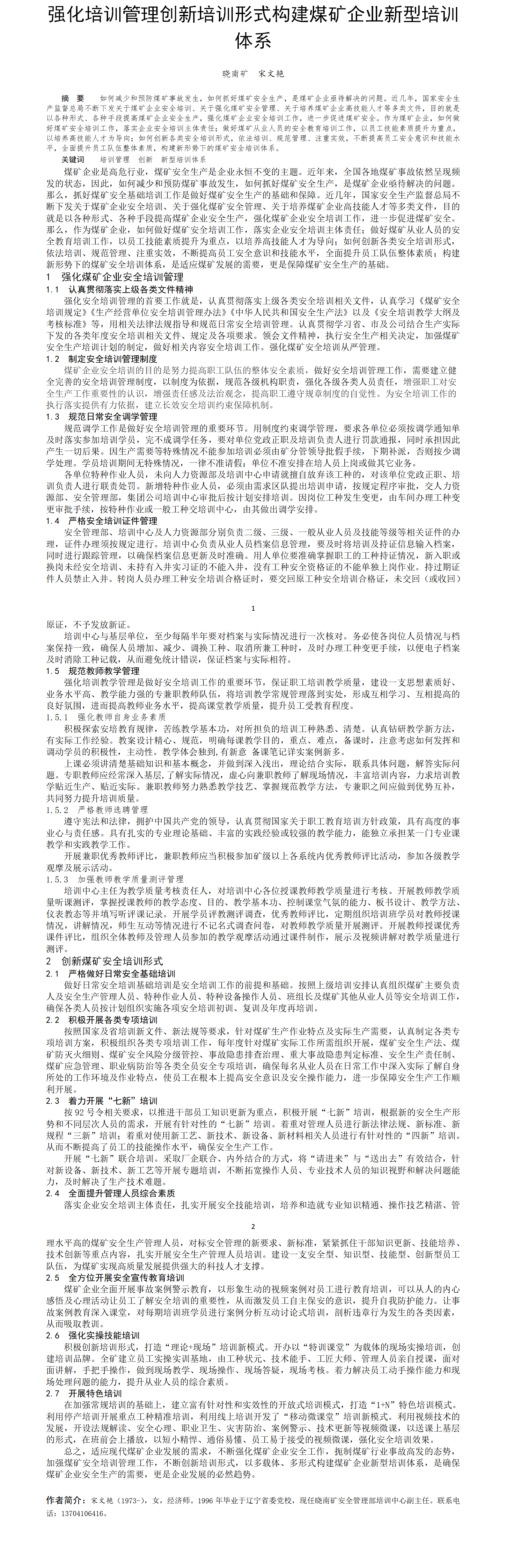 第58屆等級獎(jiǎng)?wù)撐?--強(qiáng)化培訓(xùn)管理創(chuàng)新培訓(xùn)形式構(gòu)建煤礦企業(yè)新型培訓(xùn)體系