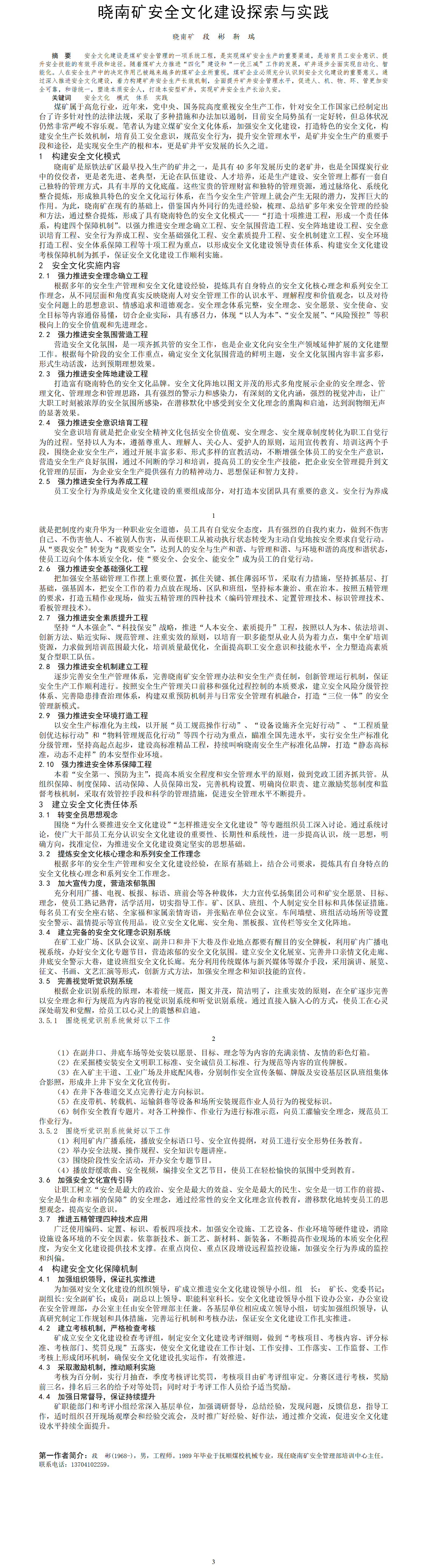 第58屆等級(jí)獎(jiǎng)?wù)撐?--曉南礦安全文化建設(shè)探索與實(shí)踐