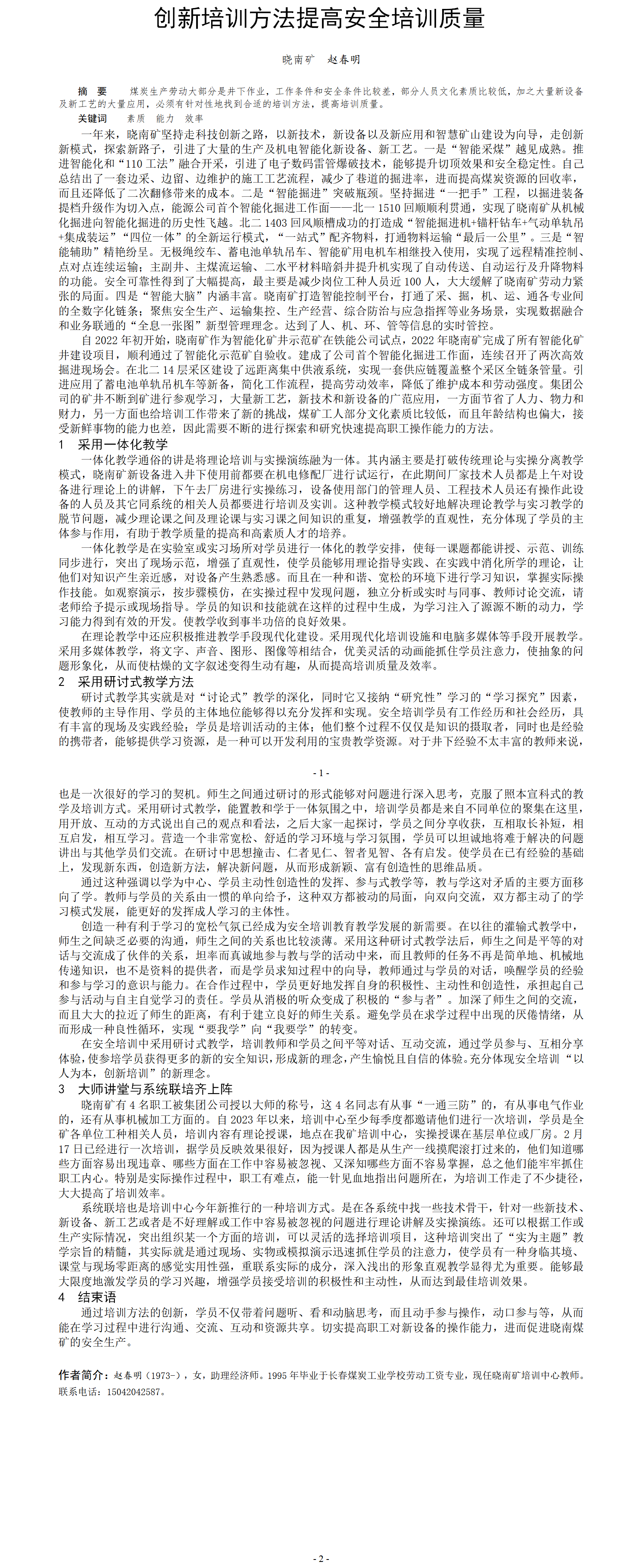 第58屆等級獎(jiǎng)?wù)撐?--創(chuàng)新培訓(xùn)方法提高安全培訓(xùn)質(zhì)量