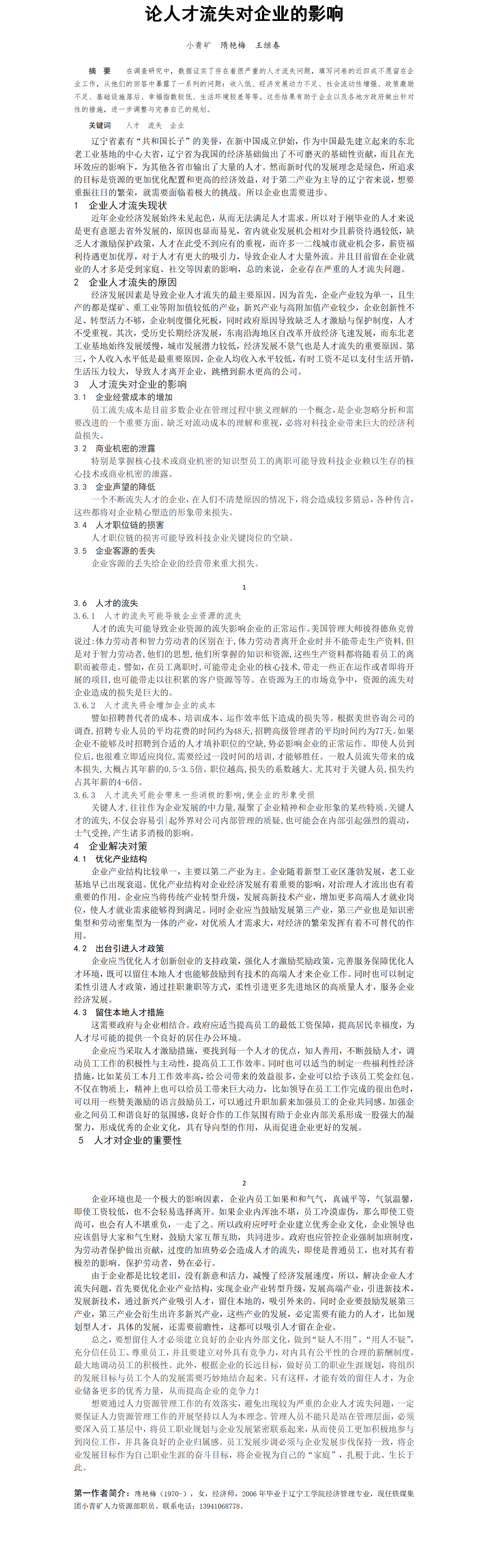 第58屆等級(jí)獎(jiǎng)?wù)撐?--論人才流失對(duì)企業(yè)的影響
