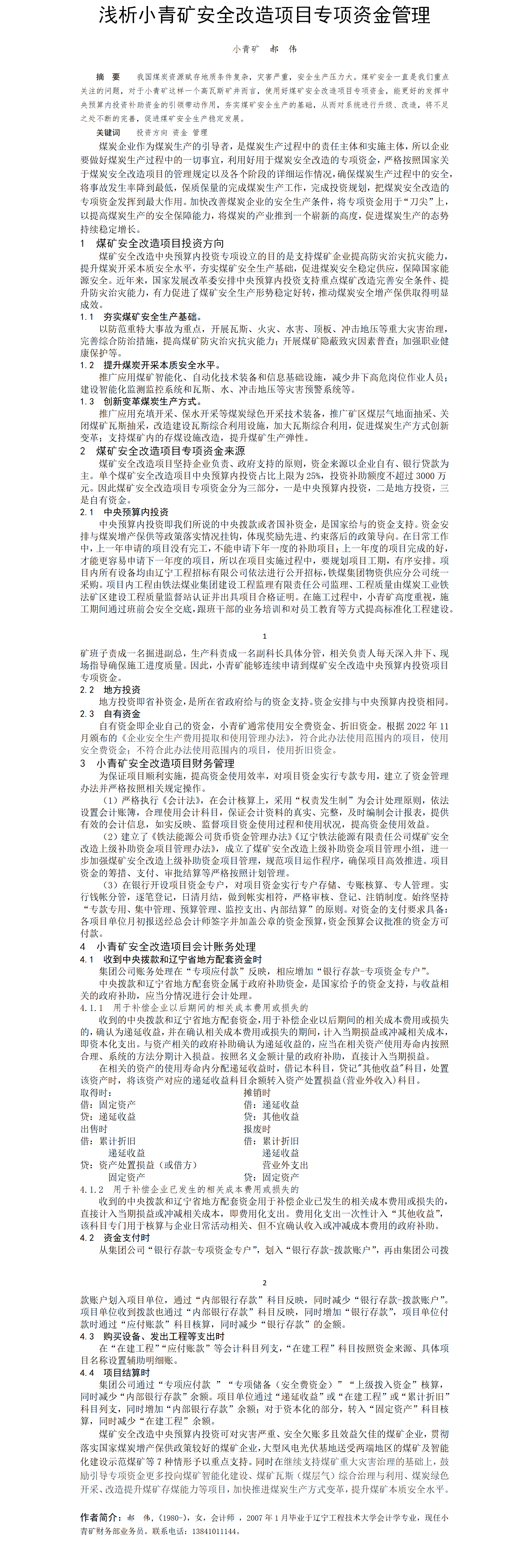 第58屆等級(jí)獎(jiǎng)?wù)撐?--淺析小青煤礦安全改造項(xiàng)目專(zhuān)項(xiàng)資金管理