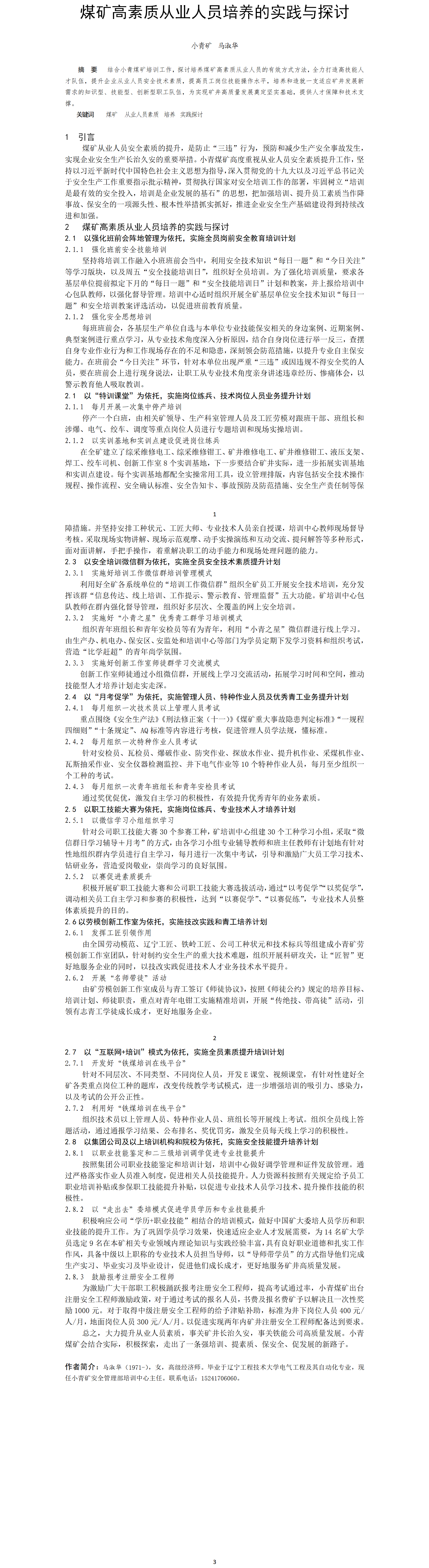 第58屆等級(jí)獎(jiǎng)?wù)撐?--煤礦高素質(zhì)從業(yè)人員培養(yǎng)的實(shí)踐與探討