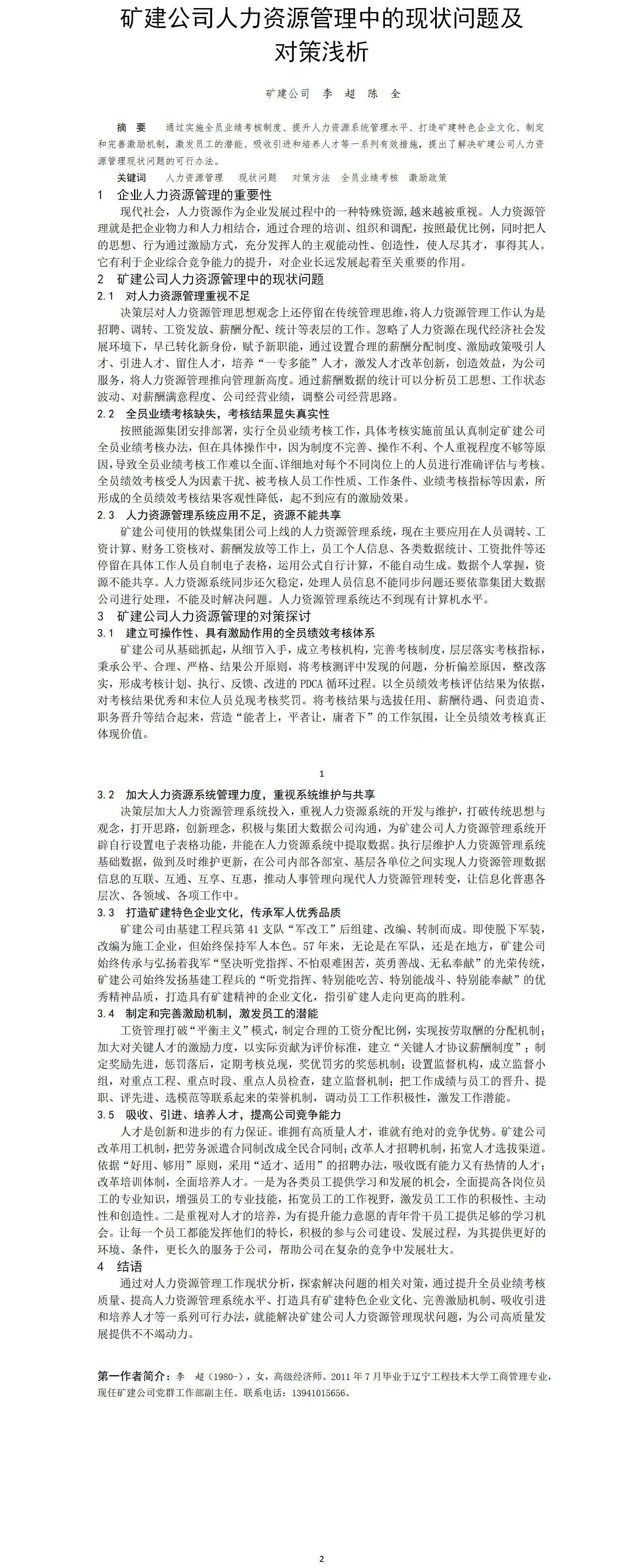 第58屆等級(jí)獎(jiǎng)?wù)撐?--礦建公司人力資源管理中的現(xiàn)狀問(wèn)題及對(duì)策淺析