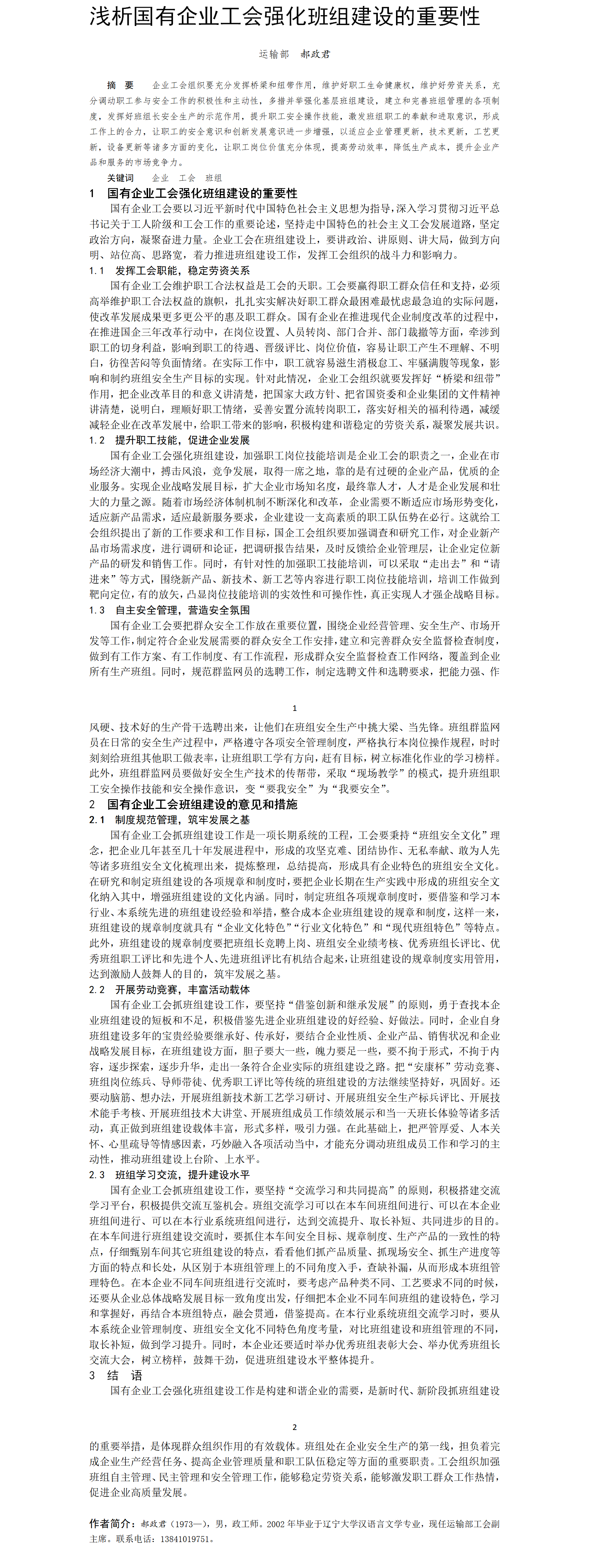第58屆等級獎?wù)撐?--淺析國有企業(yè)工會強化班組建設(shè)的重要性