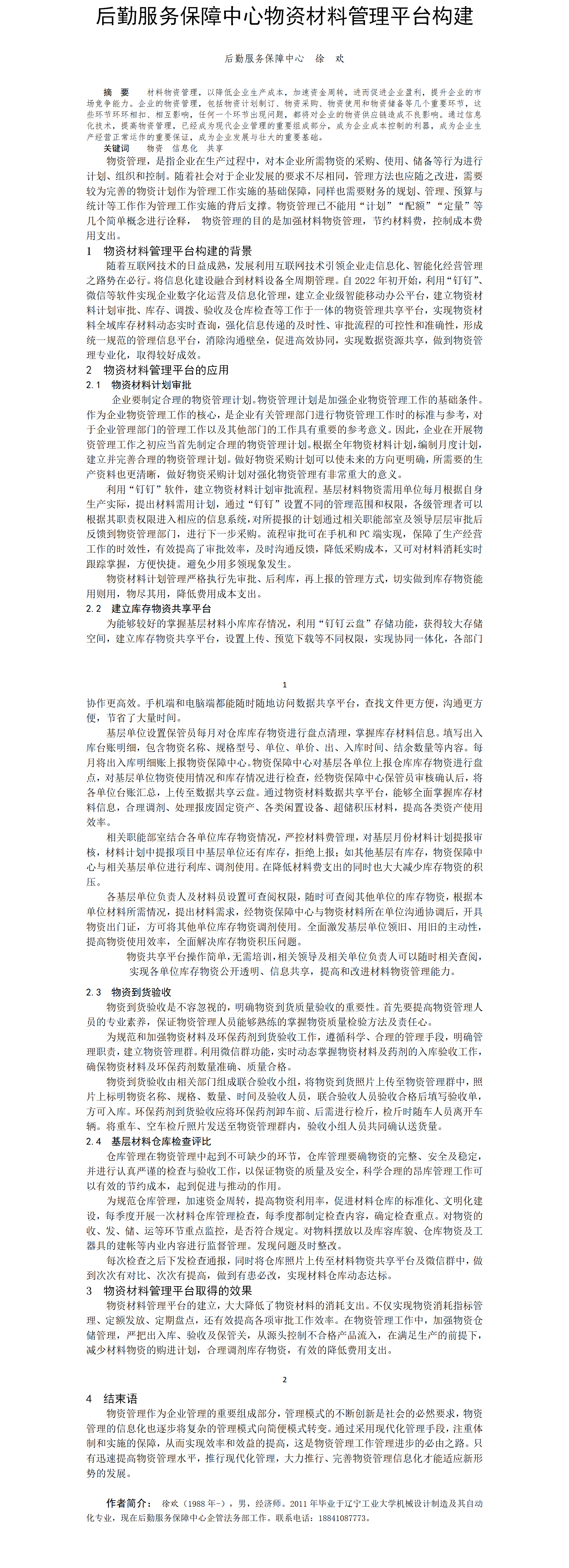 第58屆等級獎?wù)撐?--后勤服務(wù)保障中心物資材料管理平臺構(gòu)建